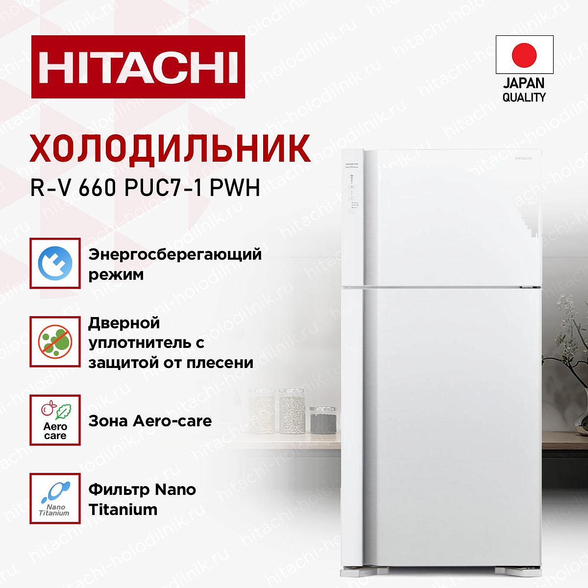* Все информационные материалы, представленные на Сайте, носят справочный характер и не могут в полной мере передавать достоверную информацию о свойствах, комплектации и характеристиках товара, включая цвета, размеры и формы. Фирма-производитель оставляет за собой право на внесение изменений в конструкцию, дизайн и комплектацию товара без предварительного уведомления. Перед оформлением Заказа Покупатель должен обратиться к Продавцу для уточнения свойств и характеристик Товара. Подробная информация о товаре указывается в инструкции и на упаковке товара. Используемое название в России: Хитачи R-V 660 PUC7-1 PWH