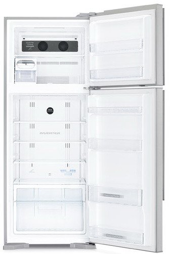 Холодильник Hitachi R-VG542 PU3 GPW с двумя камерами представлен в цвете «белое стекло». Долговечный инверторный компрессор экономит электроэнергию и снижает уровень шума в помещении до приемлемых 40 дБ, соответствуя всем стандартам. Он также позволяет выполнять охлаждение от исключительно сильного до рационально слабого. Для отслеживания и регуляции температуры встроен умный экосенсор.