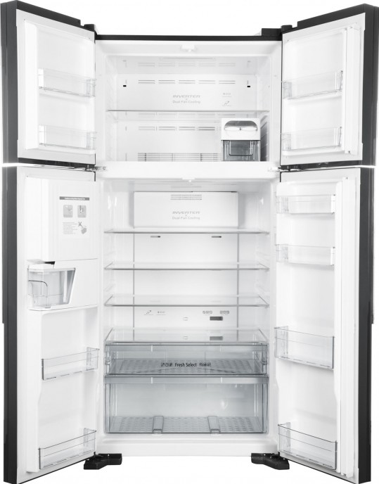 Холодильник Hitachi R-W 660 PUC7X GGR — это воплощение современного дизайна и передовых технологий. Изготовленный в Таиланде, этот агрегат сочетает в себе элегантный внешний вид и высокую функциональность. Его корпус выполнен из серого закаленного стекла, что придаёт ему изысканный и стильный вид, идеально вписывающийся в любой интерьер. Высота устройства составляет 183.5 см, ширина — 85.5 см, а глубина — 73.7 см, что обеспечивает вместительность и удобство размещения. Общий полезный объем в 540 литров позволяет хранить большое количество продуктов, а четыре двери обеспечивают легкий доступ к содержимому.