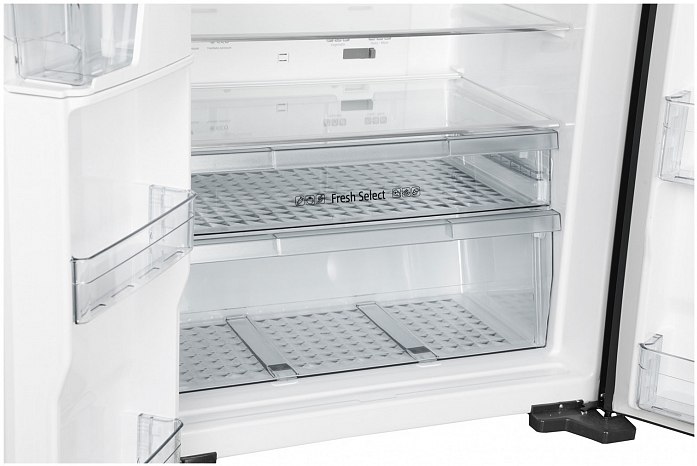 Электронная система управления с сенсорным дисплеем на двери упрощает настройку и контроль за работой устройства. Энергосберегающий режим и дверной уплотнитель с защитой от плесени увеличивают срок службы и эффективность. Ледогенератор с ручным типом и контейнером для воды позволяет всегда иметь под рукой лед. Внутреннее освещение, выполненное на светодиодах, обеспечивает хорошую видимость содержимого, а индикаторы температуры и звуковая индикация открытой двери повышают удобство использования.
