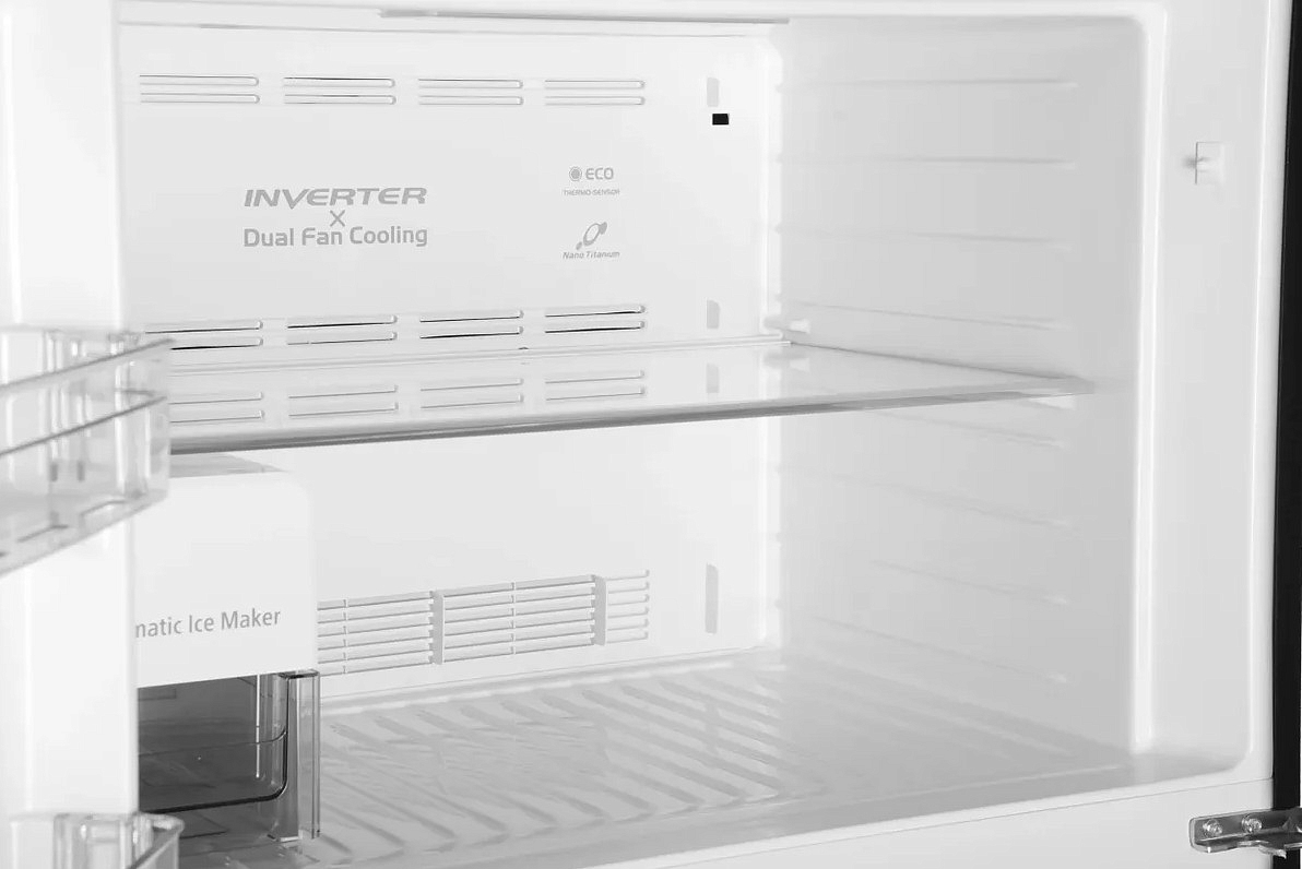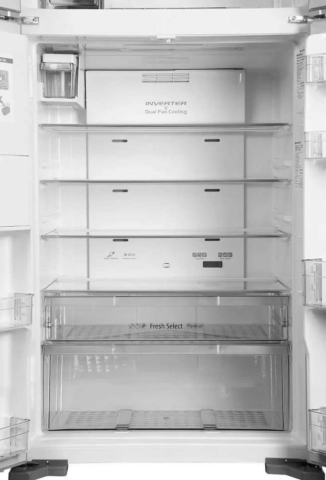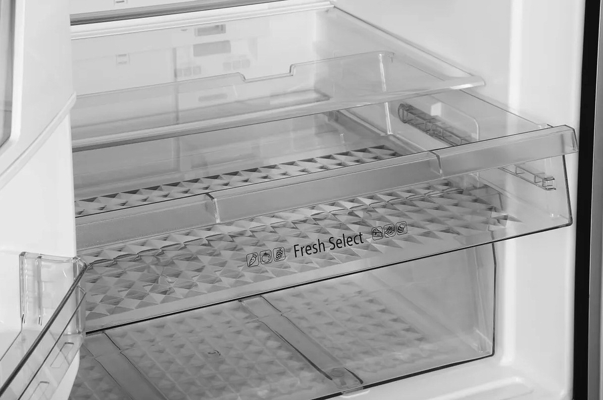 Общий полезный объем в 540 литров позволяет хранить большое количество продуктов, а система охлаждения с двумя вентиляторами Dual Fan Cooling обеспечивает равномерное распределение температуры. Внутреннее пространство холодильной камеры объемом 396 литров разделено на 4 полки из закаленного стекла, из которых три регулируемые, что позволяет оптимально организовать пространство под ваши нужды. Зона свежести для мяса и рыбы, а также увеличенное отделение Moisture-Guard для овощей, сохранят продукты свежими на долгое время.